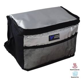 Ela é lavável, possui parte externa metalizada que reflete o calor e a parte interna é feita em material o de alta qualidade, para conservar seu conteúdo na temperatura por muito mais tempo e mantendo a qualidade.