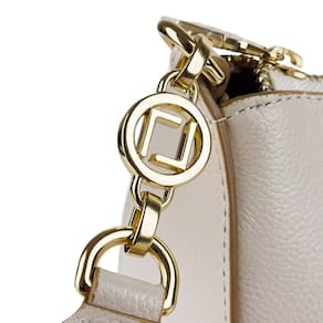 A Minibag com alça larga estampada em monograma destaca visual moderno e presença no look, sem perder a praticidade do formato compacto. O zíper superior mantém os itens seguros e o bolso interno ajuda na organização do essencial. Versátil, funciona no ombro ou no tiracolo e transita do office aos passeios com facilidade.