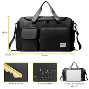 Seja para suas viagens, idas à academia, práticas esportivas ou momentos de lazer, a Bolsa Impermeável Lorben é o acessório ideal para acompanhar o seu ritmo dinâmico . Com um design moderno e cores sofisticadas, ela não apenas oferece espaço suficiente para todos os seus pertences, mas também possui compartimentos específicos para armazenar seus tênis e roupas molhadas ou sujas.Fabricada com materiais de alta qualidade, a Bolsa Impermeável Lorben é lavável, além de resistente ao desgaste e riscos, garantindo sua durabilidade ao longo do tempo. Além disso, sua parte traseira pode ser acoplada à sua mala de rodinhas, tornando-a uma parceira indispensável em suas viagens. Tanto para homens quanto para mulheres, ela é a escolha unissex perfeita, tornando-se também uma excelente opção de presente para quem valoriza praticidade e estilo.A alça transversal removível e regulável proporciona o máximo de conforto e praticidade durante o uso. Com diversos bolsos estrategicamente posicionados, essa bolsa foi projetada para facilitar a organização dos seus pertences:1 Bolso principal com zíper bidirecional1 Bolso interno com forro impermeável e fechamento por zíper1 Porta tênis com zíper1 Bolso lateral com fechamento por aderência1 Bolso frontal com zíper1 Bolso frontal com fechamento por aderência1 Bolso traseiro traseiro com zíperSeu amplo espaço interno de aproximadamente 26,32 litros e capacidade de carga de até 10 kg permitem que você leve consigo tudo o que precisa. ::DICA::Para garantir uma vida útil mais longa à sua Bolsa, é importante evitar o uso de peso além do suportado pelo produto e evitar segurá-la por apenas um lado da alça. Seguindo essas recomendações simples, você poderá desfrutar da sua Bolsa por muito mais tempo.Marca: LorbenMaterial: Fibra de poliéster, poliamida, plástico, metalCapacidade média: 26,32 Litros / 10 kgInclui:1 Bolsa MalaDimensões do produto:Largura: 47 cmAltura: 28 cmProfundidade: 20 cmComprimento da alça de ombro: ajustável até 100 cmPeso do produto: 435 gTamanho da embalagem: 50x28x5 cmPeso da embalagem: 450 gCódigo do produto: GT6249Imagens ilustrativas. As tonalidades podem variar. Os produtos são medidos manualmente, podendo haver pequenas variações nas medidas.