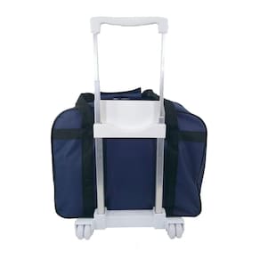 Bolsa Mala maquina costura domestica portatil com rodinha Cor: azul marinho Descrição do Produto: Bolsa Maleta para transporte de Máquina de Costura Portátil com rodinha e puxador facilita o transporte sem esforço e a guarda do seu bem de forma fácil e organizada, e ainda possui uma base firme para que possa transportar com segurança. - Bolsa para Máquina de Costura Portátil em material nylon com bolso frontal e fechamento em Zípers; - Medidas da bolsa: 43 cm de largura x 33 cm de altura x 20 cm de lateral faça comparação das medidas com a medida da sua máquina - Medidas do bolso frontal : 33 cm largura x 23 cm altura - Material sintético verniz- Suporte fixo na bolsa com rodinhas duplas e alça retrátil 80 cm de altura esticada em alumínio - Contém 1 peça Obs: Faça a comparação das medidas da máquina com as medidas da bolsa para que possa fazer uma compra segura.