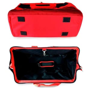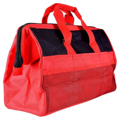 A bolsa para ferramentas confeccionada em lona possui 18 bolsos, proporcionando transporte e organização das ferramentas para trabalho de forma prática. Conta com reforço na parte superior e inferior e zíper com reforço extra para maior durabilidade. imagem meramente ilustrativa, não acompanha ferramentas.
