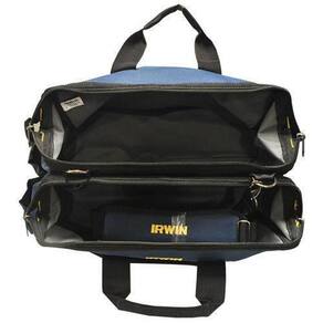 A bolsa para ferramentas 20” modelo standard da marca IRWIN, foi projetada para oferecer praticidade e agilidade ao profissional e suas ferramentas. A mala fabricada em poliéster resistente, possui dois compartimentos maiores com fecho em zíper, além de uma bolsa interna destacável com zíper. Na parte externa, conta com 3 bolsos cobertos e 7 bolsos abertos, permitindo maior praticidade. Com alça de transporte reforçada e alça para ombro removível.