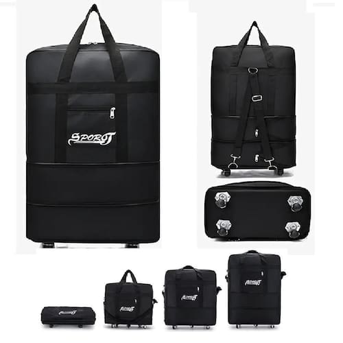 Design Dobrável e Expansível: Possui dois zíperes na base para ajustar a capacidade da bolsa conforme necessário. Ideal para expandir o espaço de armazenamento em viagens mais longas.