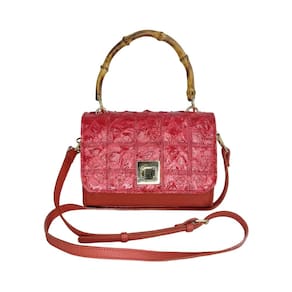 Bolsa modelo Nanci, confeccionada em 100% couro com tampa pele de pirarucu, alça de mão de bambu, e alça transversal destacável. Marca: Frank Nemeth Ean: 7895106210582