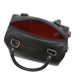 Estrutura do corpo: Construção em couro de espessura média e toque macio. Forro em sarja mista de poliéster e algodão. Logomarca destacada na parte frontal. Dimensões: 20 x 17 x 12,5 cm largura x altura x espessura Peso aproximado: 500 gramas Material: couro