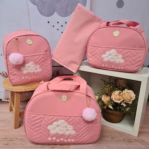 Bolsa Maternidade Bebê Kit 4 Peças Nuvem Rosa Impermeável