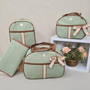 Bolsa maternidade bebê kit 4peças trocador verde impermeável Kit bolsa saída de maternidade 4 pçsKit maternidade bolsa grande e bolsa média Medidas da bolsa grande: 40 cm de comp 30 cm de alt 17 cm de larg Medidas da bolsa média: 32 cm de comp 22 cm de alt 16 cm de larg Com mochila de costa Trocador 54 cm x 34 cm Alça de mão dupla e com alça de ombro removível Composição: Matelassê 68% poliester Eva 30% Kamurcinha pvc 2% Confeccionadas em material de ótima qualidade não descasca forro interno impermeável: kamurcinha pvc Fácil de limparProduto com ótima qualidade fabricado no brasil feitas com dedicação e cuidado para o seu bebê