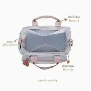 A bolsa maternidade da Pirulitando Baby é indicada para bebês mais novos onde é necessário levar vários pertences. Ideal para usar na maternidade, passeios longos, visitas ao pediatra e viagens. Possui amplo espaço interno para melhor organização dos pertences da mamãe e do bebê.