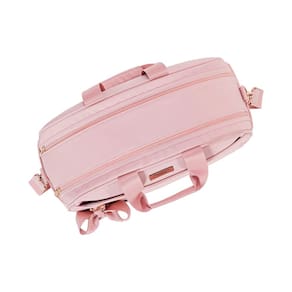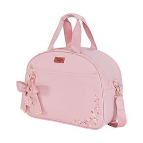 É super prática e vai deixar a hora do passeio ainda mais alegre! Além de sua abertura principal com ótimo tamanho e zíper duplo, a bolsa conta também com um bolso frontal, dois bolsos laterais, compartimento interno próprio para mamadeira ou copinho e faixa para acoplar a bolsa a mala de maternidade, perfeita para o dia a dia ela ajuda a manter os acessórios essenciais sempre à mão sem perder o estilo. Linda e super funcional, a bolsa ainda conta com um lindo chaveiro de flor e um laço na cor rosé, que traz mais charme e sofisticação à peça. Super prática, cabe dentro exatamente o que você precisa, seja para uma viagem ou um passeio, com ela você cuidará do seu bebê em qualquer lugar!