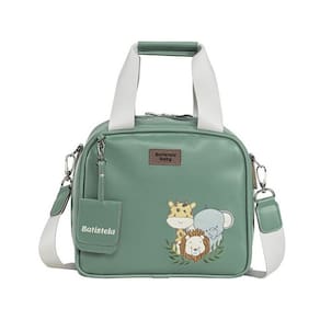 Na cor verde, ela conta com detalhes de bichinhos do safári bordados, super delicada, é muito sofisticada, tem tamanho pequeno, acompanha também um detalhe especial da marca, que dá um charme para a mesma.