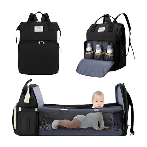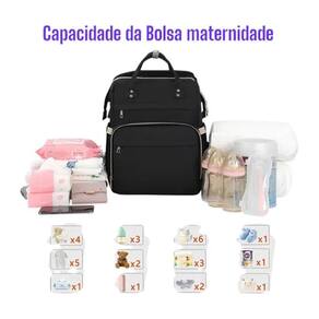 Inclui: - 1 Mochila Maternidade Expansível Impermeável Térmica. - 1 Tapete Trocador para troca de fraldas. - 2 Hastes para fixação do berço improvisado.