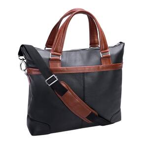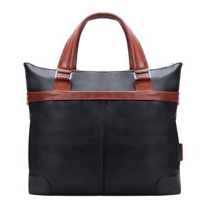 McKleinUSA EASTWARD, couro de bezerro Pebble Grain, maleta bicolor de 15", para laptop e tablet, preta (18392), couro de 15" x 4,5" x 14" - 15", pasta bicolor, para laptop e tablet — bolso frontal e externo oculto com zíper.