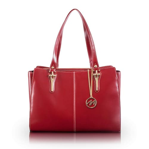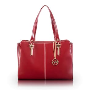 McKLEIN Bolsa feminina de couro com bolso para tablet - GLENNA- vermelha