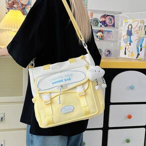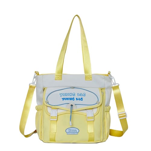 Material: tela Tamanho: 34x11x30cm Peso: 400gDesign adorável e fresco: apresenta um alegre esquema de cores amarelo e branco com estampas de logotipo fofas, ideal para meninas que amam acessórios estéticos e brilhantes. Espaçoso e prático: medindo 34x11x30cm, o interior de grande capacidade e os vários compartimentos frontais o tornam perfeito para transportar livros, cadernos e material escolar. Confortável de transportar: vem com alças ajustáveis e alças duplas, permitindo que seja usada como tiracolo, bolsa de ombro ou bolsa de mão, de acordo com a preferência. Material de lona durável: feita de lona de alta qualidade, a bolsa é macia e resistente o suficiente para suportar o uso diário por crianças ou adolescentes em idade escolar. Versátil para uso diário: uma combinação perfeita de estilo e funcionalidade, adequada para escola, passeios de fim de semana, viagens curtas ou tarefas diárias.