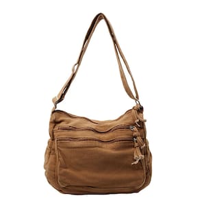 Material: tela Tamanho: 26x12x21 cm Peso: 430g Design retrô e prático: apresenta um estilo clássico de lona marrom vintage com vários bolsos externos com zíper, perfeito para uma estética descontraída e funcional. Espaçosa e com vários compartimentos: com um tamanho de 26x12x21cm, esta bolsa oferece amplo espaço para carteira, telefone, cosméticos e outros itens essenciais do dia a dia. Construção em lona durável: feita de lona espessa e de alta qualidade que equilibra robustez com conforto macio, pesando cerca de 430 g. Alça ajustável para maior conforto: a alça de ombro é ajustável para se adequar à sua preferência de transporte, seja usada a tiracolo ou por cima do ombro. Perfeito para o uso diário: ideal para viagens, recados, mercados de fim de semana ou passeios casuais. Combina bem com os estilos de moda boho, minimalista ou artístico.