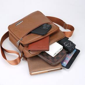 Material: couro Tamanho: 20x10x23cm Peso: 250g Design moderno e versátil: esta bolsa mensageiro de couro combina estilo moderno com praticidade, oferecendo um design moderno que combina bem com roupas casuais e de negócios. Construção em couro premium: feita de couro de alta qualidade, esta bolsa oferece durabilidade, flexibilidade e um toque luxuoso, mantendo uma estrutura leve. Impermeável e funcional: projetada para resistir aos elementos, esta bolsa possui materiais impermeáveis, mantendo seus itens essenciais seguros e secos em qualquer clima. Compacta e espaçosa: com dimensões de 20x10x23 cm, esta bolsa oferece amplo espaço para seus itens essenciais do dia a dia, como telefone, carteira, chaves e muito mais, enquanto permanece compacta e fácil de transportar. Transporte confortável e conveniente: a alça de ombro ajustável garante um uso confortável como bolsa tiracolo ou bolsa de ombro, tornando-a ideal para uso diário e viagens.