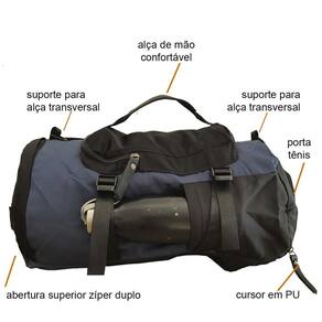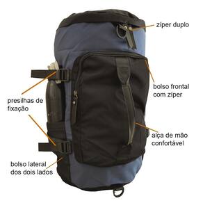 Bolsa Mochila De Viagem VE10410 Cor: marinho - Compartimentos inteligentes para separar todas as suas necessidades - Abertura principal com zíper dupo e cobertura nos zíperes - Compartimento exclusivo para armazenar tênis, roupas molhadas ou outras necessidades - Bolso frontal generoso com zíper - Bolsos laterais com cintas de fixação e presilhas de ajuste - Bolso traseiro para armanzenar as alças em caso de utilizar como transversal ou mala de mão - Alças de costas acolchoadas, ajustáveis sendo possível armazenar no bolso traseiro para opção como Mala de Mão ou Tiracolo - Alça de mão fixa e confortável - Alça transversal ajustável e removível Tamanho Aproximado em cm: AxLxP 48x27z18