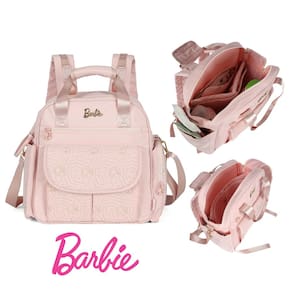 Características: ? Estampa oficial Barbie ? Múltiplos bolsos e ótimo espaço interno ? Alças ajustáveis e confortáveis ? Material resistente e fácil de limpar ? Trocador portátil incluso ? Bolso lateral porta lenço umedecido ? Bolso térmico impermeável
