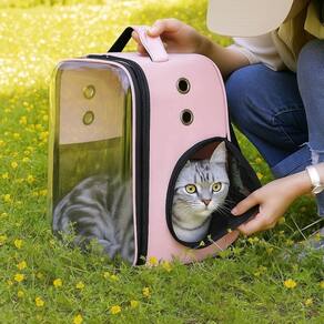 Bolsa Mochila Pet Visor Transparente Estilo Astronauta Cao Gato Viagem Ventilada Portatil Rosa