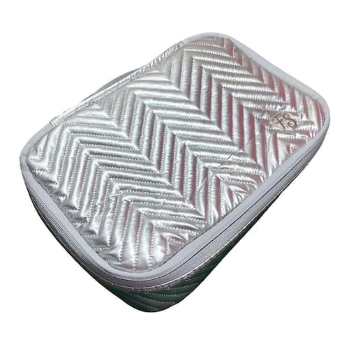 Bolsa Necessaire Estilo Matelassê Chevron Metálico Cinza