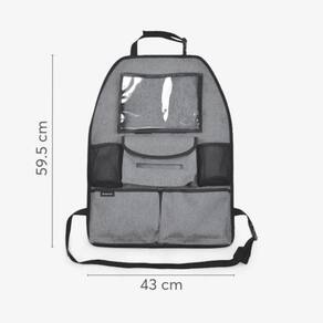 Espaço de sobra para tudo o que você precisa Com dois compartimentos em malha para bebidas, dois amplos bolsos de armazenamento e um dispensador para lenços de papel, o organizador acomoda com facilidade brinquedos, lanches, itens de higiene e outros acessórios indispensáveis para o conforto durante a viagem.