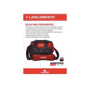 Bolsa para ferramentas 12 931080 - Worker - Produzida com poliéster 600 D para maior durabilidade e conforto - Grande abertura do compartimento principal com zíper reforçado - Costura reforçada nas áreas de grande desgaste - Bolso externo grande para maior capacidade de armazenamento - Alça para ombro ajustável e confortável - Estrutura de metal para maior durabilidade