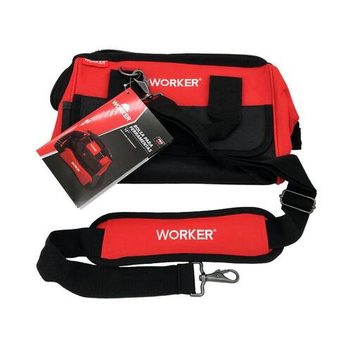 Bolsa para ferramentas 12 931080 - Worker - Produzida com poliéster 600 D para maior durabilidade e conforto - Grande abertura do compartimento principal com zíper reforçado - Costura reforçada nas áreas de grande desgaste - Bolso externo grande para maior capacidade de armazenamento - Alça para ombro ajustável e confortável - Estrutura de metal para maior durabilidade