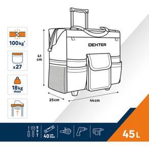 Resumo das caracteristicas: - Produto: Bolsa para Ferramentas com Carrinho - Uso Indicado: Chao - Marca: Dexter - Modelo: LT0005 - Dimensao: 44 x 25 x 41 cm - Material: Poliester - Capacidade de Peso: 18 Kg - Cor: Preto - Acompanha Alcas: Sim - Possui Organizador: Sim - Garantia do Fabricante: 60 mes(es) - Referencia do Produto: 2025R04P04-0005."
