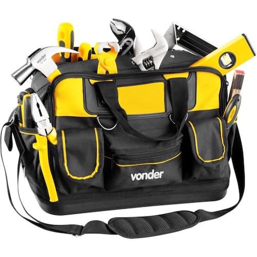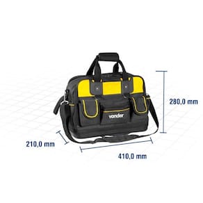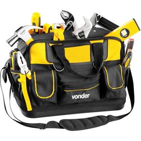 Bolsa Para Ferramentas De Lona 33 Bolsos - Vonder 1 Bolsa em lona para ferramentas. Indicada para acondicionamento de ferramentas e acessórios em geral. Confeccionada em lona reforçada com alças em nylon com abertura total, 33 divisões/bolsos sendo 26 na parte interna e 7 na externa. Comprimento: 41 cm Largura: 21 cm Altura: 28 cm Ean: 7893946514792