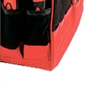 A bolsa para ferramentas confeccionada em lona reforçada possui 32 bolsos, proporcionando transporte e organização das ferramentas de trabalho de forma prática. As partes da correia são feitas em material sintético durável e resistente. Imagem meramente ilustrativa, não acompanha ferramentas.