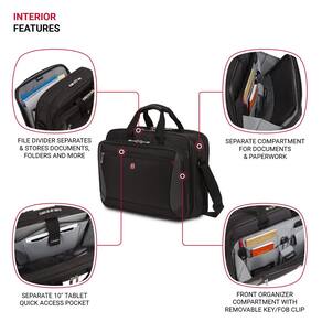 Wenger, Preto - Compartimento acolchoado para laptop de 16 polegadas e bolso dedicado para tablet de 10 polegadas com forro antiarranhões - Divisor de arquivos separa e armazena documentos, pastas e muito mais - O organizador Essentials mantém itens como cabos, carregadores e cartões de visita limpos e acessíveis com um sistema de bolsos - O bolso frontal com zíper protege e oferece acesso rápido e fácil aos itens - 17 x 31 x 43,9 cm