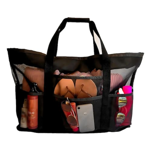 Bolsa Para Praia Verao Sacola Cor Preto Organiz Bolsa de alta qualidade, com malha respirável, e secagem rápida, ideal para passeios em clube, praia, piscina, piquenique, etc...