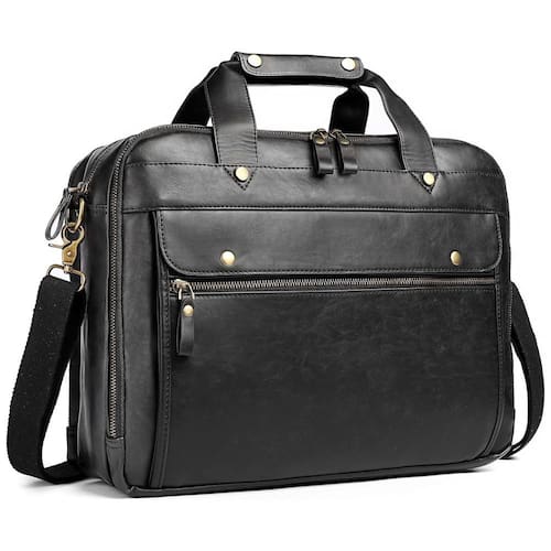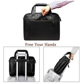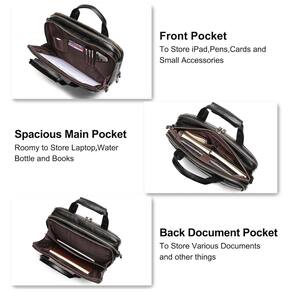 Dimensão e material 16,5 13,2 5 polegadas, 41 x 33 x de peso 3,0 lb, 1,36 kg A pasta masculina é feita de couro de alta qualidade para ser elegante, profissional e de aparência profissional com grande capacidade. O cinto na parte de trás da bolsa mensageiro de negócios dos homens pode ser facilmente encaixado no carrinho de bagagem, trazendo conforto para viagens de negócios e viagens. Multifunções Esta pasta para homem tem três bolsos principais com funções diferentes, um bolso traseiro para documentos, um bolso central para laptop e um bolso frontal multifuncional para atender todas as suas necessidades de negócios. O bolso frontal da pasta de couro tem um design especial, 2 bolsos pequenos, 3 porta canetas e 4 porta cartões para ser mais funcional. Alças removíveis de atualização A alça de malas para laptop de computador para homens tem 2 fivelas ajustáveis para manter a almofada no lugar certo de seu ombro para que você se sinta confortável. Você pode usá lo como uma pasta de homem, uma bolsa de ombro e uma bolsa crossbody de acordo com suas preferências. Durável e à prova dágua A bolsa de mensageiro para laptop é forro de tecido durável e as partes de metal são feitas de bronze. A parte de metal torna a pasta mais durável para suportar mais peso. O couro à prova dágua pode ser com mau tempo, sempre que você levar coisas importantes para sair Marca: Não Informado