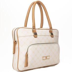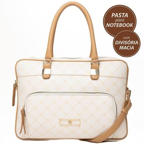 Bolsa Pasta Notebook Transversal Feminina Rafitthy 28.16600 Cor: Off-white Bolsa Pasta Notebook Tote Transversal Feminina Rafitthy 28.16600 Monograma Pasta ideal para trabalho e estudo. Material leve e resistente. Possui alça de mão e transversal, fechamento em zíper, divisória acolchoada para notebook, bolsos externo e interno. Produto 100% nacional. Medidas: 36x28cm LarguraxAltura Material: Poliuretano. : 90 dias contra defeitos de fábrica.