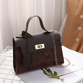 O material utilizado é o couro PU, que é uma alternativa mais acessível e resistente ao couro animal. Além disso, a bolsa possui uma estampa que dá um toque extra de estilo e personalidade.