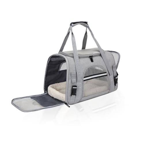 A bolsa de viagem é fácil de carregar, tem uma pegada confortável e acolchoada possui também alguns modos de se segurar por ter além da alça fixa, uma removível, ou seja, seu animalzinho e você irão viajar no conforto. A bolsa é impermeável e fácil de limpar. Por ser feita com nylon oxford e poliéster taffeta a bolsa de viagem tem uma resistência e durabilidade sem igual. A bolsa acompanha um tapete macio para o conforto do seu pet e laterais com malhas respiráveis que tornam a mochila ainda mais arejada e adequada para viagens.