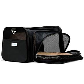 Bolsa Pet Transporte Expansível Preta+ Par de Luva Tira Pelos