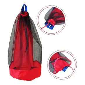 Especificações técnicas: - Material: Oxford Nylon e rede entrelaçada - Cor: Vermelha e Preto - Resistente e durável - Amplo espaço interno - Saídas vazadas para a rápida passagem de areia - Fácil de dobrar e guardar