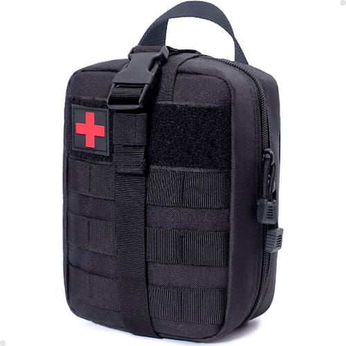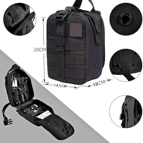 A bolsa possui vários compartimentos e elásticos internos para manter os itens de primeiros socorros organizados e acessíveis. O design modular, com sistema MOLLE, permite que seja facilmente anexado a outros equipamentos, mochilas ou cintos. A alça robusta e os fechos de zíper reforçados garantem que os itens de primeiros socorros estão seguros e prontos para quando necessário. É compacto, leve e vem, tornando-o ideal para qualquer situação que requeira uma resposta rápida de primeiros socorros.