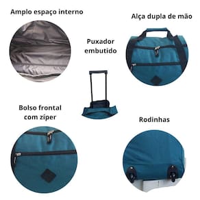 Bolsa Sacola de Viagem com Rodinhas Carrinho 24 Clio Cor: Verde Bolsa Sacola de Viagem com Rodinhas Carrinho 24 Clio Viajar com conforto e praticidade é essencial, e a Bolsa Sacola Viagem Grande com Carrinho da Clio, foi projetada para atender a essa necessidade. Combinando um design moderno, materiais de alta qualidade e funcionalidade superior, esta bolsa é a escolha perfeita para quem busca facilidade e estilo em suas viagens. Características Principais Design Funcional: A bolsa possui um carrinho integrado com rodinhas de alta resistência e uma alça de mão, facilitando o transporte, especialmente em aeroportos e rodoviárias. Material Durável: Confeccionada em poliéster de alta qualidade, a bolsa é resistente ao desgaste e à água, garantindo proteção e durabilidade. Espaço Amplo: Com um grande compartimento principal, a bolsa oferece capacidade suficiente para acomodar roupas, sapatos e acessórios para viagens mais longas. Além disso, conta com um bolso frontal grande para organizar itens menores. Fechamento Seguro: Zíperes robustos garantindo que todos os itens estejam bem seguros durante o transporte. Versatilidade: a bolsa pode ser Utilizado tanto como uma mala de rodinhas quanto como uma sacola de mão. Benefícios Adicionais Estilo Sofisticado: A bolsa combina facilmente com qualquer estilo pessoal. Facilidade de Armazenamento: Quando não está em uso, a bolsa pode ser dobrada de forma compacta, ocupando pouco espaço no armário. Manutenção Simples: O material de fácil limpeza permite que a bolsa mantenha sua aparência impecável mesmo após várias viagens. Ideal Para Viagens Longas: Com espaço amplo e design prático, a bolsa é ideal para viagens de uma semana ou mais. Uso Diário: Pode ser utilizada para atividades cotidianas que exigem transporte de muitos itens e trabalho. Presentes: com sua funcionalidade e design elegante, é um presente ideal para amigos e familiares que adoram viajar. Especificações Técnicas Dimensões aproximadas uso de mão: 70cm largura x 32cm altura x 30cm profundidade Dimensão aproximada com a haste acionada na vertical: 102cm de altura Peso: 2kg Compartimento: 1 Material: poliéster Zíperes: de alta durabilidade Alças: nylon reforçado Rodinhas: rodas de poliuretano de alta resistência Período de : 30 dias A Bolsa Sacola Viagem Grande com Carrinho da Clio, é a combinação ideal de praticidade, durabilidade e design sofisticado. Perfeita para quem busca facilitar suas viagens, garantindo que todos os itens estejam organizados e acessíveis. Invista em uma bolsa que acompanha seu ritmo e estilo de vida, tornando cada viagem uma experiência mais confortável e elegante. Conteúdo da embalagem: 1 Bolsa com Rodinhas Grande Clio As rodinhas da bolsa são resistentes Sim, a bolsa possui rodinhas de poliuretano de alta resistência, projetadas para suportar o peso da bagagem e proporcionar um deslocamento suave e estável. Como faço para limpar a bolsa A limpeza da bolsa é simples. Utilize um pano úmido para limpar a superfície externa. Para manchas mais difíceis, pode-se usar um sabão neutro. Evite imergir a bolsa em água. A bolsa é adequada para ser Utilizado como bagagem de mão em aviões As dimensões da bolsa 70cm x 32cm x 30cm podem exceder os limites permitidos por algumas companhias aéreas para bagagem de mão. Recomenda-se verificar com a companhia aérea antes de viajar. Marca: Não Informado Ean: 7894899680879
