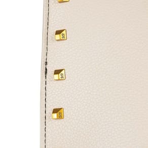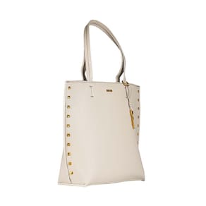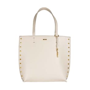 Bolsa shopper grande confeccionada em material atanado tecnológico, destacada por seus detalhes em tachas douradas que conferem um toque de ousadia ao seu estilo. Com um design moderno e sofisticado, esta bolsa apresenta uma alça de ombro confortável, complementada por uma tag com o logo da marca, adicionando um toque de exclusividade. Seu amplo compartimento interno oferece espaço para acomodar todos os seus pertences, com um prático bolso organizador para fácil acesso aos itens essenciais, fechamento superior em zíper com puxador garante segurança aos seus pertences.