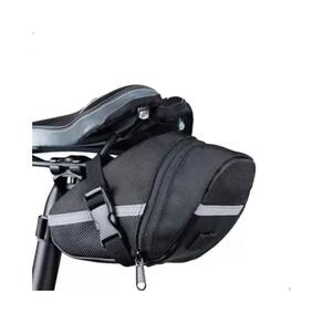 Bolsa de Selim com dois compartimentos para transporte de câmara de ar extra, ferramentas e pequenos objetos. Confeccionada em tecido Durven e estruturada com placa rígida de polietileno, oferece excelente resistência à abrasão. Possui ampla abertura, encaixe frontal para luz sinalizadora, refletivos e fixação através de fitas e tecido adesivo, permitindo comprimir a bolsa, mantendo-a estável em terrenos acidentados. O regulador superior possibilita ajustar o ângulo de fixação no selim. O zíper é invertido, diminuindo o atrito com a terra, lama e areia e prolongando a vida útil do cursor. Ideal para Mountain Bike e ciclismo de estrada, podendo também ser utilizada para cicloturismo e uso urbano. Marca: Não Informado