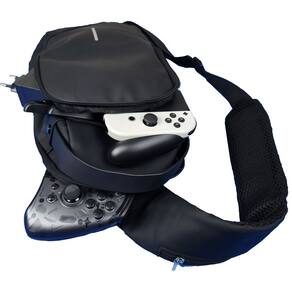 Esta bolsa sling é perfeita para transportar seu Nintendo Switch e acessórios com facilidade. Ela possui um compartimento principal espaçoso para acomodar o console com controles maiores, além de bolsos extras para guardar os controles Joy-Con, a fonte de alimentação AC e outros itens, como chaves e cartôes. Confeccionada em material resistente, a bolsa oferece proteção contra impactos e arranhões durante os deslocamentos. Seu design compacto e a alça ajustável permitem que você a use confortavelmente atravessada no corpo. Com espaço suficiente para tudo o que você precisa levar, esta bolsa sling é uma ótima opção para jogadores que desejam manter seus pertences organizados e seguros.