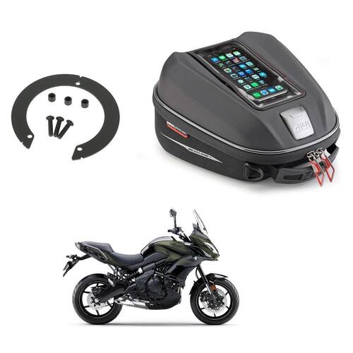 Combo bolsa tanque givi st611 + flange bocal de engate rápido tanklock bf04 para moto kawasaki versys 650 ano 2010 a 2014