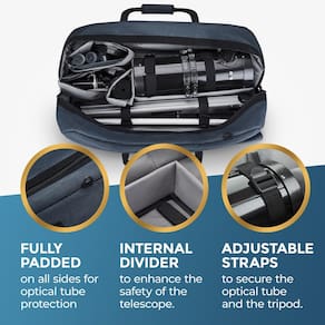 bagmate Bolsa para telescópio multiuso – Estojo de transporte para telescópio absorvente de choque com alça de ombro ajustável e armazenamento extra – repelente de água (76 cm) - compatível com - Alça de ombro ajustável: o estojo de transporte possui uma alça de ombro removível e alça de mão de fecho aderente para facilitar a portabilidade. - Tecido repelente de água: feito de tecido de poliéster repelente de água para manter seu telescópio protegido da chuva e outras condições climáticas. - Armazenamento durável: construído com materiais de nível militar, incluindo espuma absorvente de choque, para evitar danos ao seu telescópio. - Proteção completa do equipamento: vem com divisórias de fecho aderente para organizar todos os seus equipamentos e bolsas de acessórios para manter seus aparelhos favoritos à mão. - Fecho de zíper: possui um fecho de zíper para fácil acesso e armazenamento seguro.