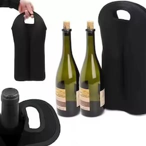 A Bolsa para Vinhos possui um design específico para acomodar a garrafa de vinho. Também possui uma divisória que possibilita transportar 2 garrafas de vinho e é acolchoda para evitar quebras.