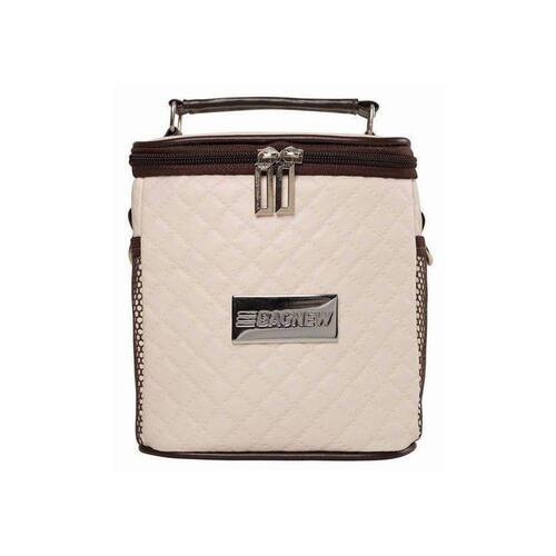 Bolsa Térmica 2 Potes - Marfim com Marrom Style Model DESCRITIVO TÉCNICO Bolsa Térmica BagNew Style Model Revestimento externo: Matelasse; preenchimento: isolante térmico espuma Pac de 10 mm; revestimento interno: térmico. Incluso: 1 manta térmica, 2 potes BPA FREE 510 ml, prendedor lateral e alça de ombros. Medidas: 18cm altura x 15cm largura x 14cm profundidade