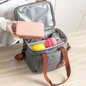 Conserva a temperatura dos alimentos por horas Forro interno térmico laminado e impermeável Alça de mão + alça transversal removível e ajustável Marmita com bandeja de separação e vedação com trava Pode ir ao micro-ondas com a válvula aberta Ideal para o trabalho, faculdade, academia e passeios