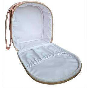 INTERIOR - Forrada em material branco liso, de fácil limpeza e resistente a água; - Suporte para mamadeira ou garrafa de água evitando o tombamento e possíveis derramamentos; - Bolso frontal na parte interna da tampa dianteira para auxiliar na divisão dos pertences