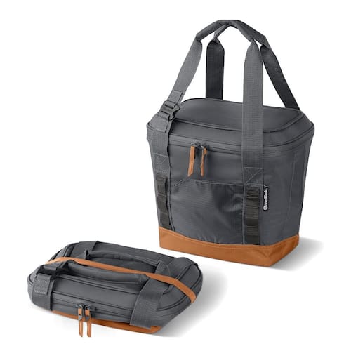 CleverMade Pacifica – Bolsa térmica dobrável dobrável para praia, viagens, carro, abridor de garrafas, cinza frio/conhaque